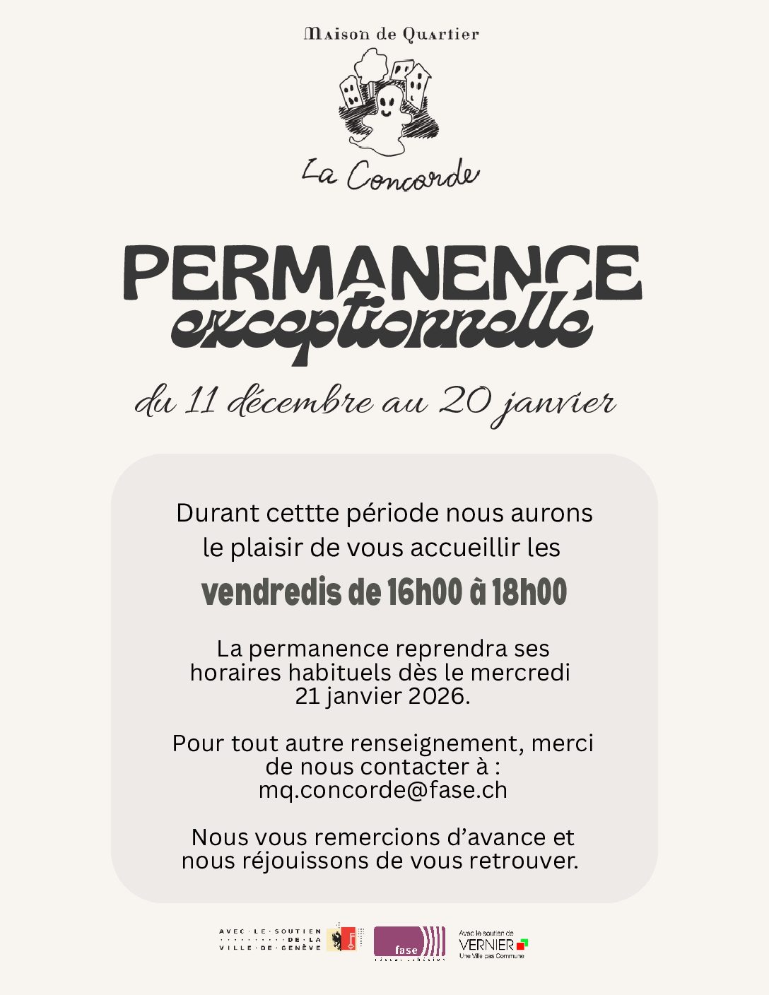 La Maison de Quartier de la Concorde se réjouit de vous accueillir ! À cet...